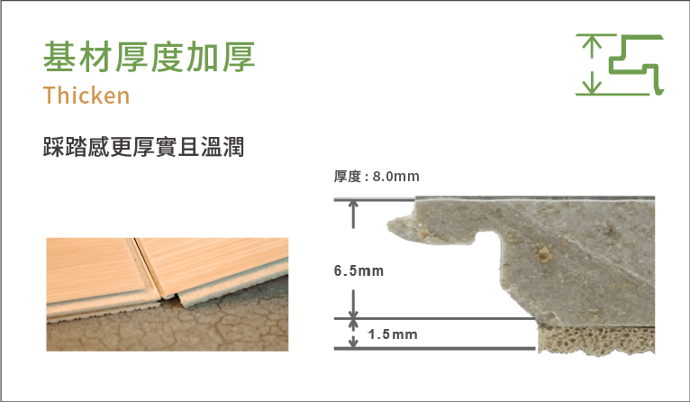 | 厚度 Thickness 厚度 | 6.5 mm + 1.5mm IXPE 底層 |