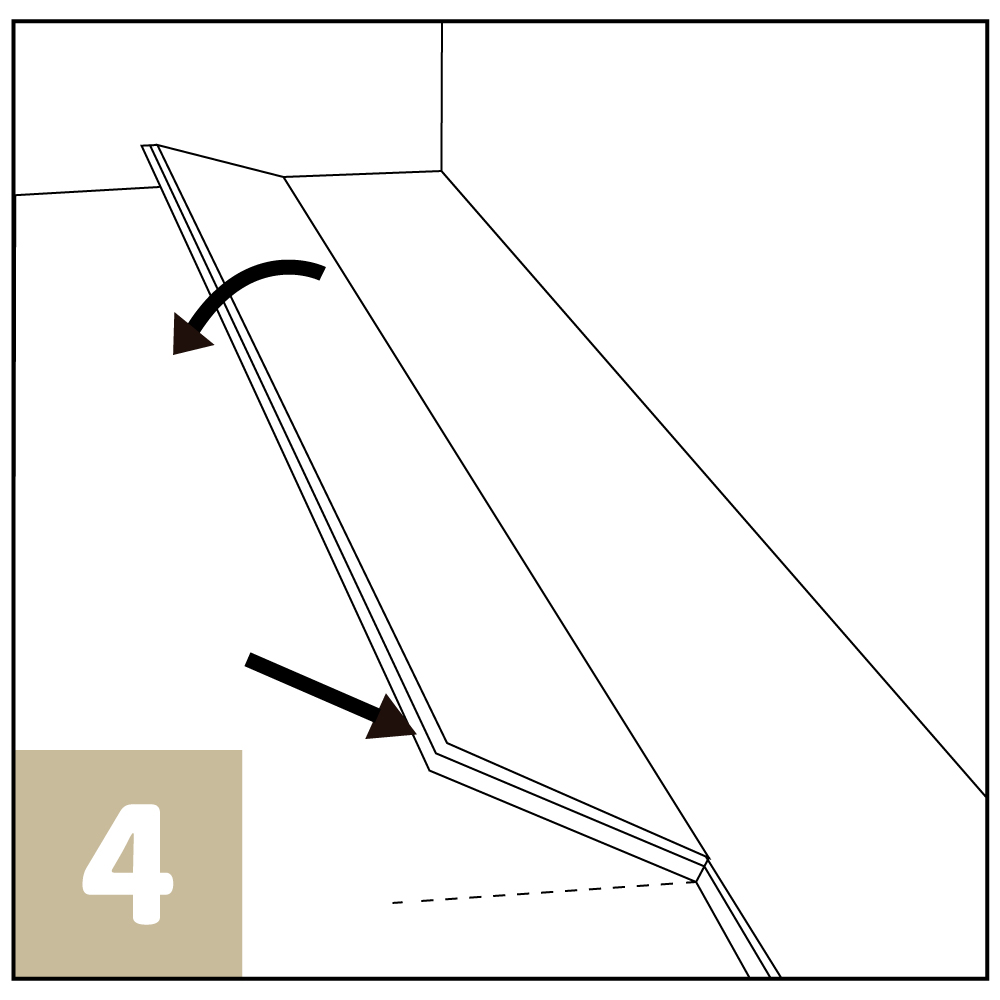 當鋪設至墻邊的最後一排時,請根據實際需要進行適當的裁切( 見圖7 )。請注意,應確保與牆面保留適當的膨脹間隙,同時裁切後的產品寬度不得小於標準產品寬度的1/2。