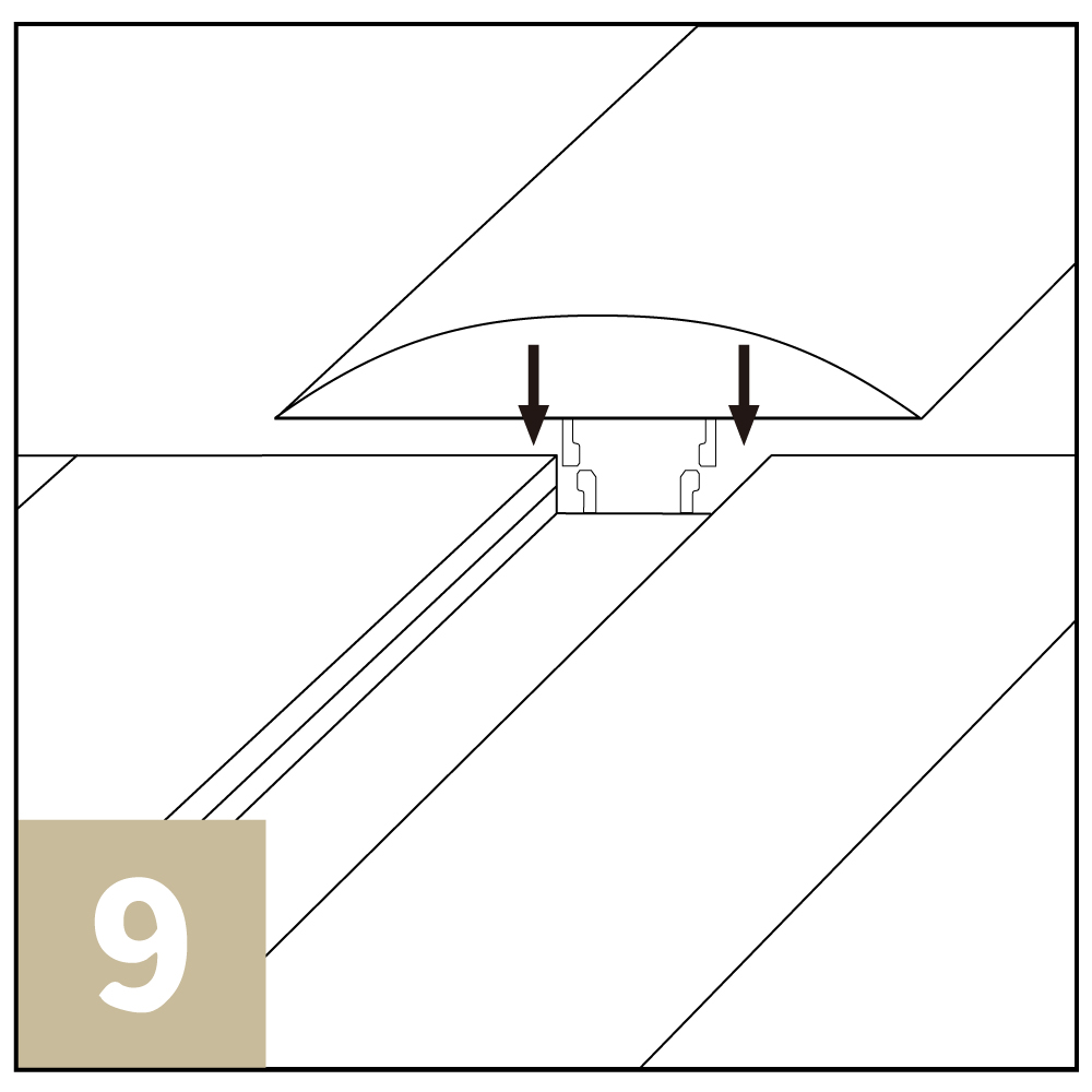 在較大的空間鋪設禾里家系列鎖扣地板時,如果鋪設的長度超過8米,應該考慮分區鋪設,並在不同區域的接合處使用壓條( 見圖9 )。