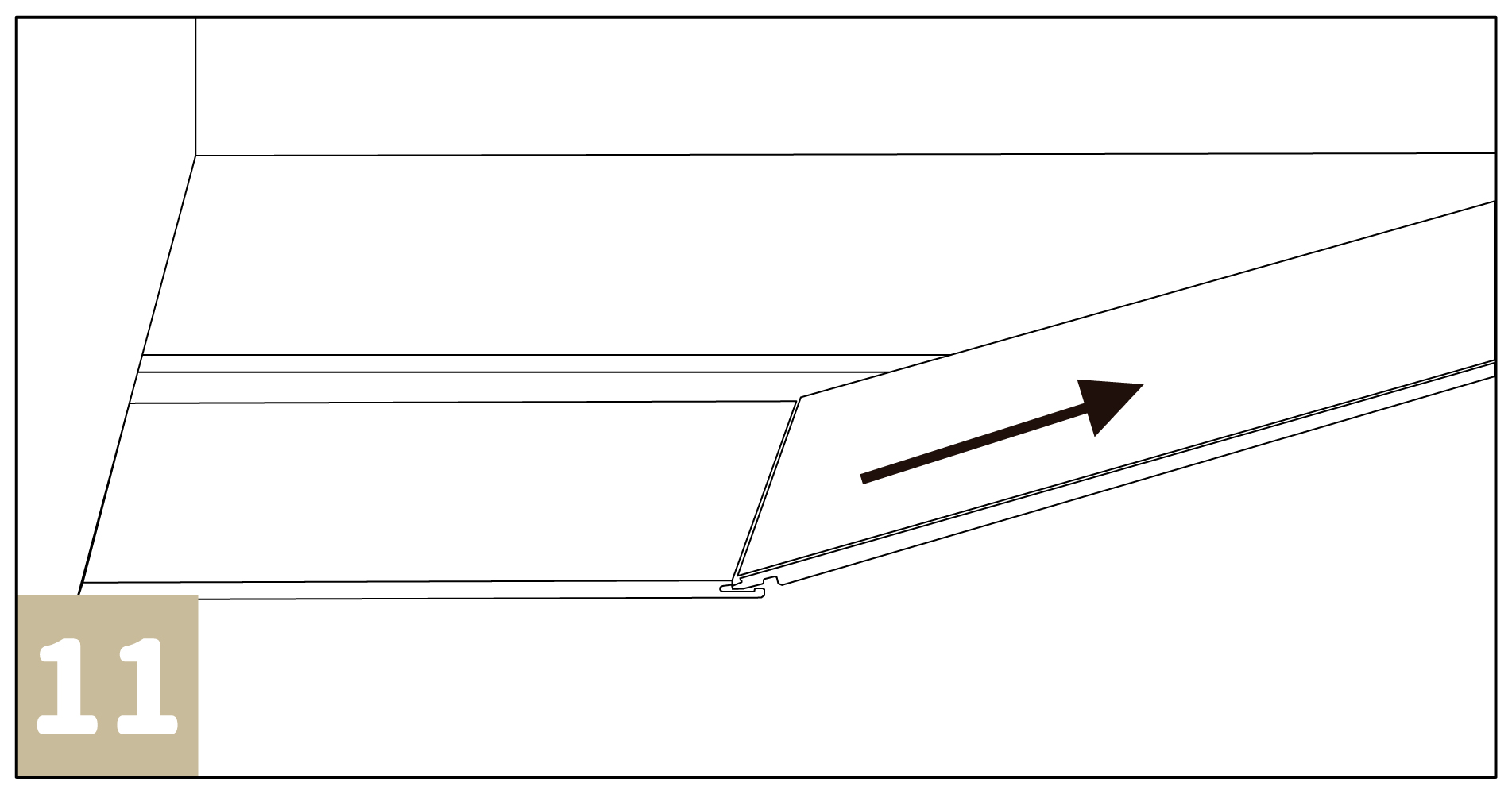 鎖扣安裝的優點是不需要膠水就可直接安裝。母榫面朝自己( 見圖1 ),在靠牆邊預留約5-8毫米的伸縮縫。